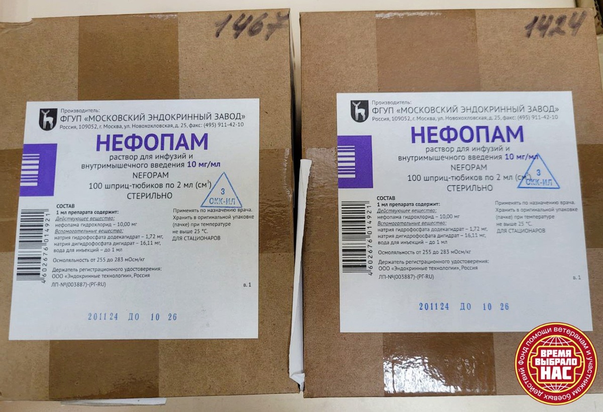 ЗАКУПИЛИ «НЕФОПАМ» ДЛЯ ПРЕДСТОЯЩЕГО СБОРА ПОМОЩИ В ЛЕНИНГРАДЕ! Всем привет! Как все вы знаете, 18, 19 и 20 апреля в Ленинграде, в штабе фонда «Время выбрало нас» на Проспекте Стачек, дом 75, будет проводится очередной сбор помощи для бойцов на фронте! Традиционно мы также будем комплектовать аптечки для воюющих подразделений армии России. Специально для этой цели нами были закуплены две коробки обезболивающего «Нефопам» (в шприцах-тюбиках). Оплата была произведена, благодаря пожертвованиям участников нашей группы ДОНБАСС☆ПОМОЩЬ☆2015 . СПАСИБО ВСЕМ, КТО ПОМОГАЕТ ДЕЛОМ! Больше информации о сборе - vk.com/wall-88530155_21582 или https://dzen.ru/media/bfvremya/vnimanie-vajno-leningrad-1819-i-20-aprelia-67f63c317a79595f235859b2
