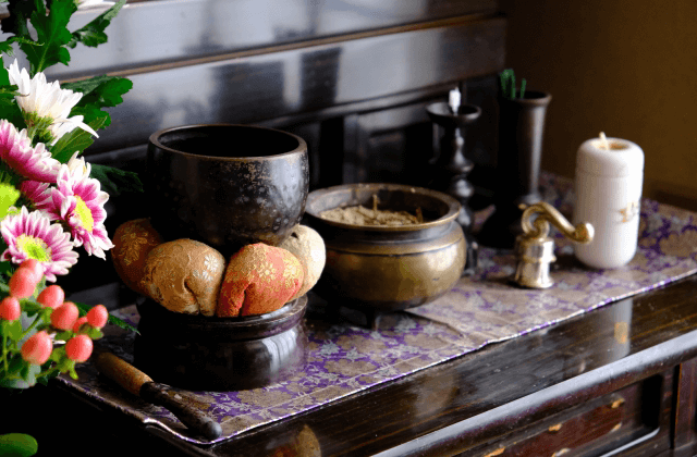 — Не приносите алкогольные напитки на алтарь Это основано на заповеди не употреблять алкоголь. Тем не менее, многие семьи приносят алкогольные напитки на буддийский алтарь, потому что умерший любил употреблять спиртное. Существуют также правила приношения живых цвето