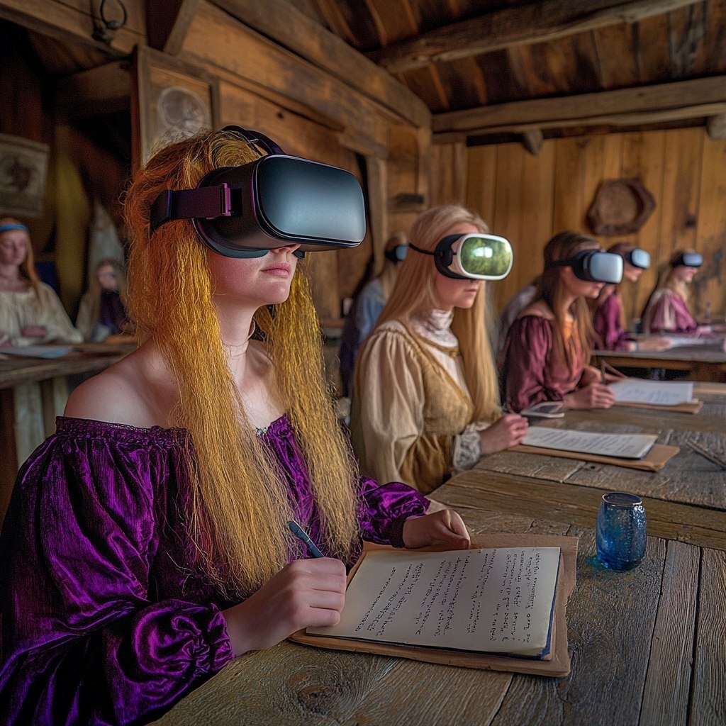 Создано на основе запроса: a very serious gathering of women practicing witchcraft in a wooden hut. One of them wears a virtual reality headset around her head. We see them sitting behind tables, taking handwritten notes. --- Автоперевод: Очень серьезное собрание женщин, практикующих колдовство в деревянной хижине. Отлично получилось? 🤔 https://dzen.ru/id/65c0c65c86e4f837c27b24d7 #ИИ #AI #нейросеть #midjourney #art