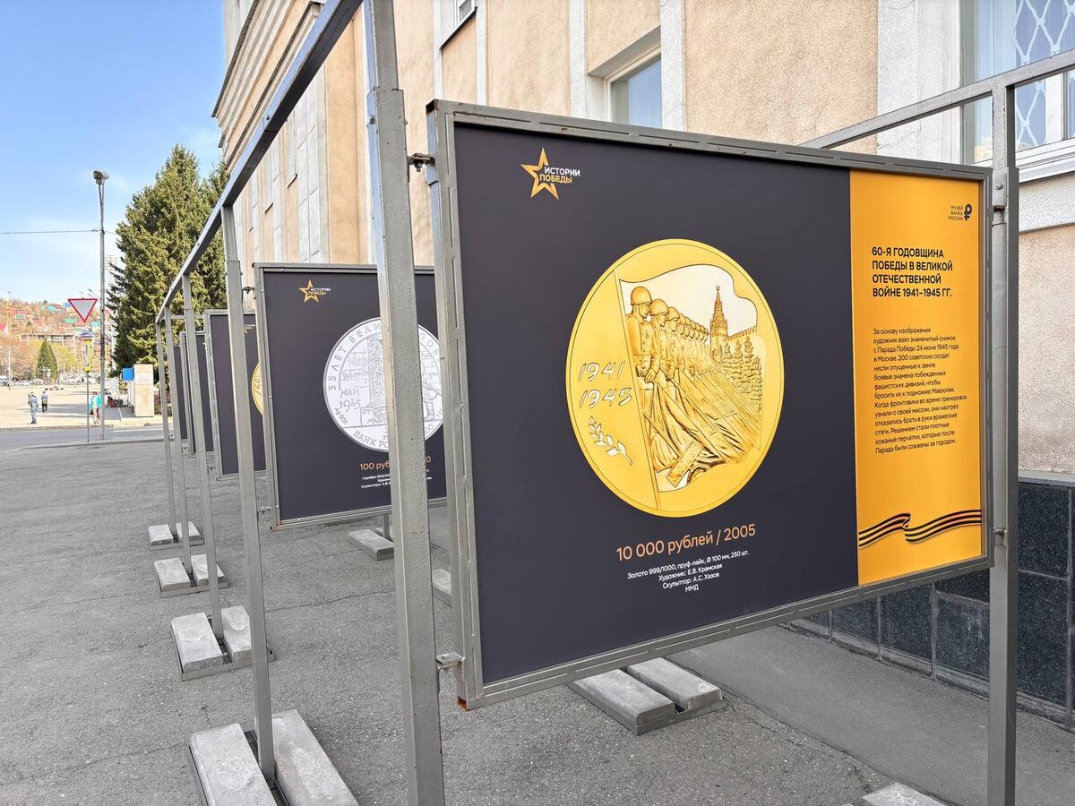 🟠🟠🟠🟠🟠 «Истории Победы»: в Горно-Алтайске открылась фотовыставка Банка России В Горно-Алтайске у здания Отделения Банка России в Республике Алтай открылась фотовыставка «Истории Победы». Экспозиция знакомит с памятными монетами, посвященными героям и событиям Великой Отечественной войны. Каждый сюжет памятных монет фотовыставки рассказывает о мужестве советских людей, добывавших Победу на фронте и в тылу, о событиях, которые стали страшным испытанием для современников и непроходящей болью для потомков. «Художники-медальеры изобразили на монетах мемориалы славы, фрагменты известных фронтовых снимков, знаковые события. Оборона Москвы, танковое сражение на Курской дуге, Сталинградская битва, прорыв блокады Ленинграда и водружение Знамени Победы над Рейхстагом — эти страницы истории, знакомые каждому, изображены на памятных монетах», — рассказал заместитель управляющего Отделением Банка России в Республике Алтай Олег Обухов. Посетители выставки смогут в мельчайших деталях рассмотреть