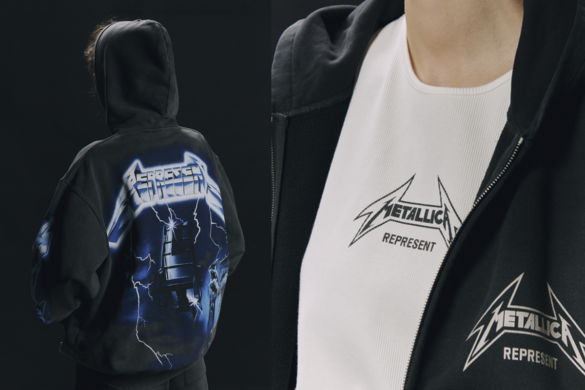 Британский бренд уличной одежды Represent, основанный братьями Джорджем и Майком Хитонами в 2012 году, стал символом премиального стиля с уличным характером. За несколько лет компания превратилась из локального проекта в глобальный бренд, известный своим вниманием к качеству, деталям и культурным отсылкам. Особое место в ДНК марки занимают музыкальные течения, что и стало фундаментом для данной коллаборации. Совместная коллекция Represent и Metallica — это 17 предметов одежды, вдохновленных классикой метал-сцены. В “капсулу” вошли футболки, худи, лонгсливы, шорты, посвящённые культовым альбомам группы: Ride the Lightning, Master of Puppets, …And Justice For All и Garage Inc.. Ключевым элементом коллекции стала винтажная эстетика и внимание к графике — например, принты, созданные с использованием 26 слоев трафаретной печати. Коллекция стала логичным продолжением истории бренда, который ранее сотрудничал с Belstaff и Oasis. По словам Майка Хитона, вдохновением послужила винтажная футболк