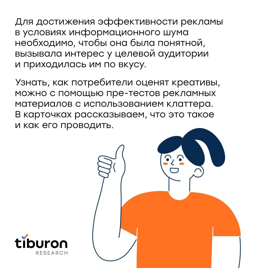 Чтобы заранее узнать, насколько креатив заметен и понятен среди других реклам, можно провести пре-тест с моделированием медиасреды. В карточках Ася Гандера, руководитель проектов Tiburon Research, объясняет, что такое клаттер, когда его применять и как проводить такой анализ. 🔍 Оставляйте заявку по почте, и мы постараемся помочь: client@tiburon-research.ru #tiburon_школа