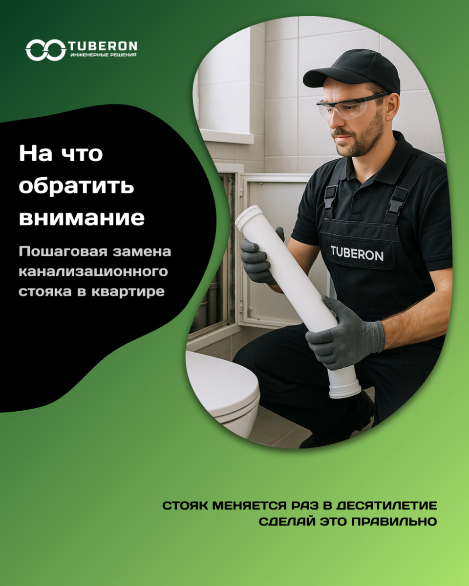 Замена канализационного стояка — серьёзная задача, которую нельзя откладывать, если появились протечки, запахи или износ труб. Вот основные моменты, которые стоит учесть: 1️⃣ Согласование с соседями и управляющей компанией Перед началом работ обязательно уведомите жильцов сверху и снизу. Доступ к стояку нужен во всех квартирах по вертикали. 2️⃣ Отключение воды Обязательно перекрывается стояк холодной и горячей воды. Часто требуется помощь сантехника из УК. 3️⃣ Демонтаж старого стояка Работы начинаются сверху вниз. Если стояк чугунный — возможны сложности при разборке, особенно в местах соединения. 4️⃣ Выбор нового материала ПВХ или ПП — современные и надёжные варианты. Лёгкие в монтаже, устойчивы к химии, долговечны. 5️⃣ Монтаж нового стояка Все соединения герметизируются. Используются специальные резиновые манжеты или уплотнители. Важно обеспечить необходимый уклон и прочную фиксацию труб. 6️⃣ Проверка герметичности После сборки — обязательно испытание системы: заливается вода сверху