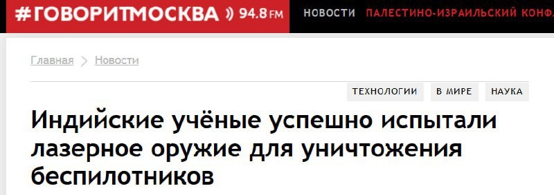 πΠΠ½Π΄ΠΈΡ ΡΠΎΠ·Π΄Π°Π»Π° Π»Π°Π·Π΅ΡΠ½ΠΎΠ΅ ΠΎΡΡΠΆΠΈΠ΅ ΠΏΡΠΎΡΠΈΠ² Π΄ΡΠΎΠ½ΠΎΠ² ΠΠ½Π΄ΠΈΠΉΡΠΊΠΈΠ΅ ΡΡΠ΅Π½ΡΠ΅ ΠΈΡΠΏΡΡΠ°Π»ΠΈ Π»Π°Π·Π΅ΡΠ½ΠΎΠ΅ ΠΎΡΡΠΆΠΈΠ΅ Π΄Π»Ρ ΡΠ½ΠΈΡΡΠΎΠΆΠ΅Π½ΠΈΡ Π΄ΡΠΎΠ½ΠΎΠ². Π‘ΠΈΡΡΠ΅ΠΌΠ° ΡΡΠΏΠ΅ΡΠ½ΠΎ ΠΏΠΎΡΠ°Π·ΠΈΠ»Π° ΠΠΠΠ Ρ Π½Π΅ΠΏΠΎΠ΄Π²ΠΈΠΆΠ½ΡΠΌ ΠΊΡΡΠ»ΠΎΠΌ ΠΈ ΡΠΎΠΉ Π΄ΡΠΎΠ½ΠΎΠ², ΠΏΠΎΠ²ΡΠ΅Π΄ΠΈΠ² ΠΈΡ