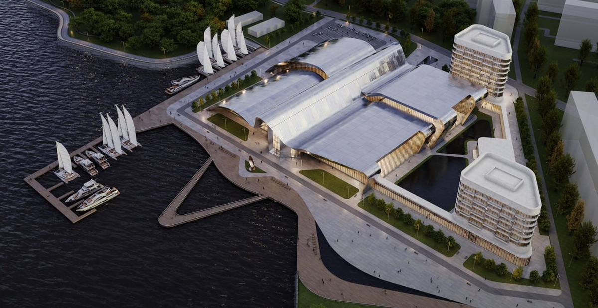 ⚡️ В Тушино на берегу Химкинского водохранилища вместо ЖК построят волнообразный стадион Две башни, стилобаты, крыша-волна и набережная с причалами. Комплекс займёт 53 тыс. м². Внутри — стадион на 1500 зрителей, манеж, тренировочные поля, теннисный клуб и кафе. По слухам, там может разместиться футбольная академия «Динамо». Ранее здесь хотели построить жильё, но после протестов местных жителей проект пересмотрели. Теперь обсуждают вырубку деревьев — часть жителей против стройки и выступают за сохранение зелёной зоны.