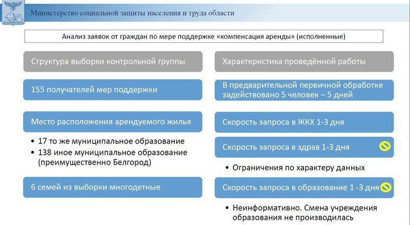 Гладков распорядился публиковать результаты проверок договоров аренды жилья для жителей приграничных районов На оперативном совещании регионального правительства министр соцзащиты Олеся Митякина сообщила, что из 155 проверенных заявок 21 касалась аренды жилья. После уточняющих звонков арендаторам и собственникам подтвердились только четыре договора, один из которых вызвал сомнения. С начала года 141 человек добровольно отказался от выплат, что сэкономило региону 14 млн рублей. Первый заместитель губернатора Илья Пономарёв добавил, что теперь власти смогут запрашивать у арендодателей подтверждение оплаты, что усложнит фальсификацию документов. Вячеслав Гладков поручил ежемесячно публиковать информацию о расходовании денежных средств на компенсацию за аренду жилья, так как это будет дисциплинировать граждан и снизит риски злоупотреблений. Подписаться на 🗞🗞 | Поддержать бустом