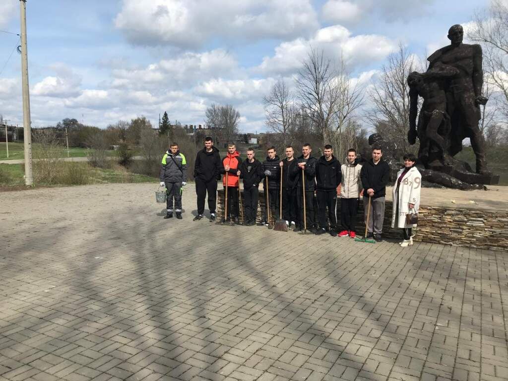 Молодёжная администрация Миллеровского района и студенты (ДСХТ) провели уборку территории у памятника «Жертвам фашизма»