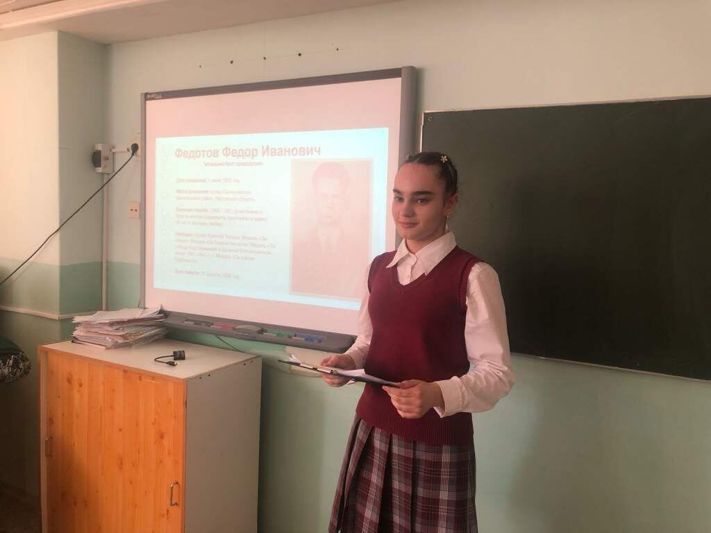 Перед лицеистами со своими презентациями о родственниках, принимавших участие в Великой Отечественной войне выступили ученица 8а класса Наумова Таисия, ученик 7б класса Петрич Мирослав и ученица 9а класса Шоста Анастасия. Все ученики получили алгоритм создания своей семейной книги памяти, используя материалы президентских сайтов «Память народа» и «Подвиг народа». В канун праздника 9 мая в классах запланированы мероприятия, на которых каждый ученик представит свою семейную книгу памяти, весь собранный материал будет храниться в музейном комплексе «Наследие» и может быть использован для проведения Уроков мужества, ведения исследовательской работы.