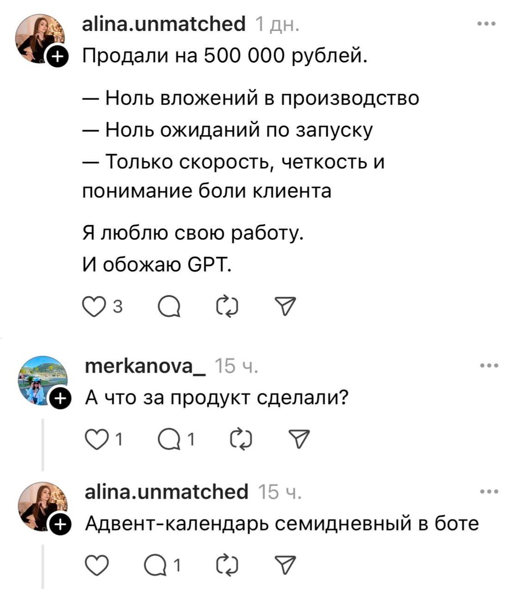 Как заработать 500 тыс. на продукте (семидневном адвент-календаре в боте), полностью придуманном ChatGPT.