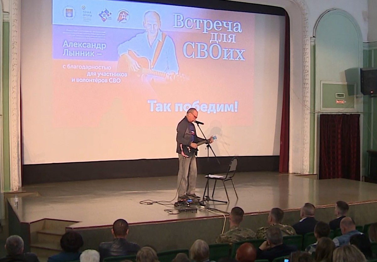 Исполнитель за последние три года дал сотни концертов на передовой, а в Волгоград приехал, чтобы поблагодарить добровольцев, помогающих фронту. Песня «Добровольцы» звучит впервые. И пусть исполнитель немного подглядывает в текст – это простительно. Композиция была написана всего пару дней назад в поезде по дороге в Волгоград. «Я вообще люблю Волгоград, потому что этот город у меня ассоциируется с моей страной. Вижу очень добрые глаза, и вот эта энергетика, которая от вас идет, она очень приятная, очень нужная, необходимая для меня сейчас здесь и для нас всех, чтобы эту энергетику передать ребятам, которые сейчас на фронте», – говорит бард Александр Лынник. В зале нет случайных людей. Эти мужчины и женщины последние три года, по сути, живут в дороге. Это волонтеры, которые помогают фронту. С риском для жизни они доставляют гуманитарную помощь. И, как признаются организаторы выступления, концерт – это маленькая возможность сказать неравнодушным землякам «спасибо». «Основная цель – это бл