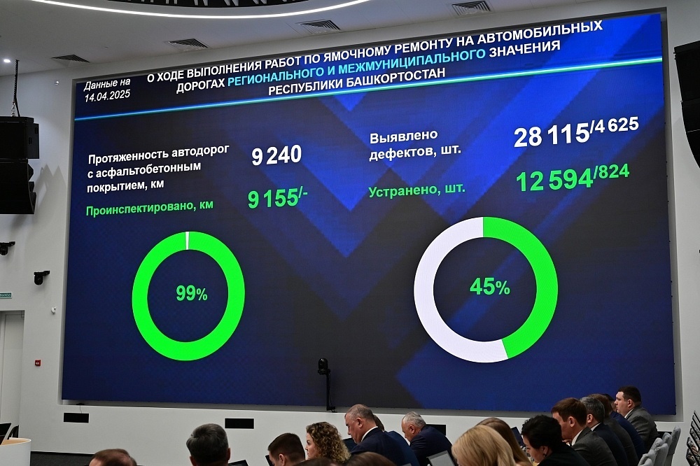 Сотрудники дорожных служб Башкортостана провели проверку 15 113 километров автомобильных дорог с асфальтобетонным покрытием, которые относятся к региональному, межмуниципальному и местному значению. Это составляет 79% от общей протяжённости таких дорог. В ходе проверки было обнаружено и зафиксировано 41 440 дефектов, из которых 14 827 уже были устранены. Об этом сообщила Любовь Минакова, министр транспорта и дорожного хозяйства региона, на еженедельном оперативном совещании, которое провёл Глава республики Радий Хабиров. Как и в предыдущие годы, все выявленные дефекты были внесены в единую систему контроля и планирования работ в области дорожной инфраструктуры (СКПДИ). Это позволяет отслеживать состояние каждого обнаруженного повреждения и контролировать сроки их устранения. Работы начались во всех муниципалитетах республики. *** Руководитель Федерального управления автомобильных дорог «Приуралье» Денис Абрамов сообщил, что на федеральных трассах, проходящих через территорию Башкортост