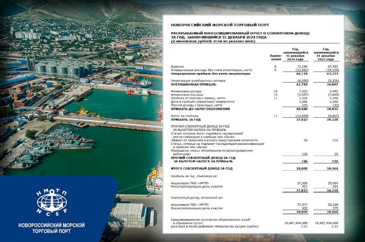 НМТП | Обзор отчёта по МСФО за 2024г • Капитализация: 179 млрд / 9,15₽ за акцию • Выручка 2024:71,2 млрд ₽ (+5,4% г/г) • EBITDA 2024: 48,2 млрд ₽ (+11,5% г/г) • Чистая прибыль 2024: 37,4 млрд ₽ (+24,8% г/г) • скор. ЧП 2024: 38,9 млрд ₽ (+25,4% г/г) • P/E ТТМ:4,6 • P/B:1 • fwd дивиденд 2024: 11% 👉Отдельно результаты за 2П2024: • Выручка: 32,5 млрд ₽ (-1,1% г/г) • EBITDA: 20 млрд ₽ (+7,5% г/г) • скор. ЧП: 16,6 млрд ₽ (+18% г/г) 👉На операционном уровне всё стабильно: в 2024г Новороссийский порт (основной актив компании) показал рост грузооборота на 2% г/г до 164,8 млн тонн. 👉За прошедший год операционные расходы компании снизились до 22,9 млрд (-5,2% г/г). Рентабельность по EBITDA вышла на рекордные с 2019г значения и составила 67,7%. 👉С учетом арендных обязательств, у НМТП сохраняется чистая денежная позиция в 8 млрд рублей. При этом, если смотреть только финансовый долг, то чистая денежная позиция уже превышает 27,5 млрд рублей (15,3% от текущей капитализации). 👉У компании 19