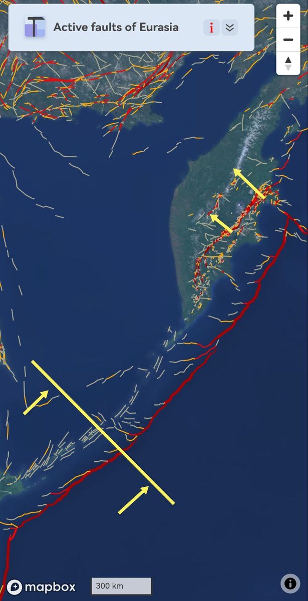 В ответ на пост По состоянию на сейчас Охотская плита недовольна вдоль Камчатки, а также всё ещё ставит границы по Курильской гряде. Пока что претензии не выше М6+.