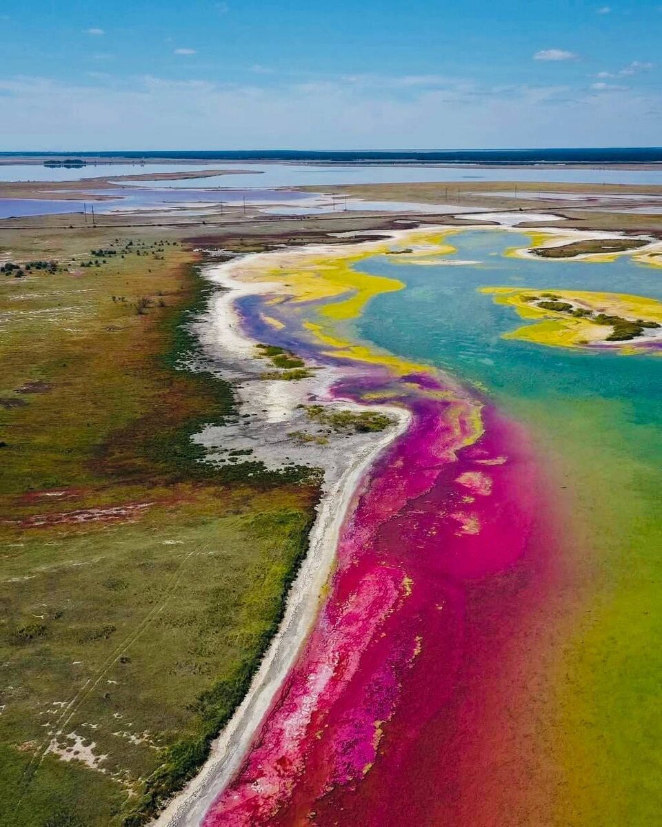 Как будто краску случайно разлили. Но, это не краска, а Йодное озеро на Алтае. Зелёный цвет — это водоросли, а розовый — мелкие рачки. А вы были на Алтае или ещё в планах? А вдруг этим летом? 😍😍😍