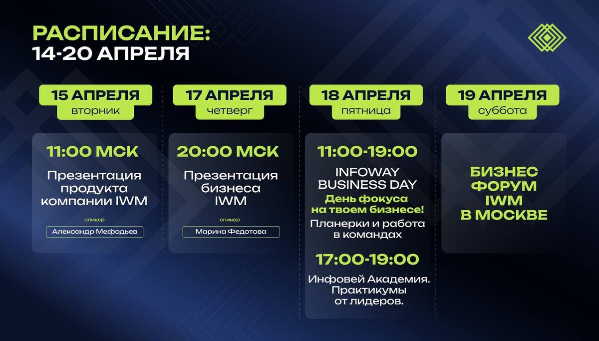 📌🖥РАСПИСАНИЕ НА НЕДЕЛЮ! Уважаемые партнеры! Мы подготовили расписание онлайн-встреч на этой неделе. Обязательно сохраните его себе и присоединяйтесь к нам. https://us06web.zoom.us/j/2116731674?pwd=xahqmhZLmGsNMAcfVYG8sNdiNWlLRY.1