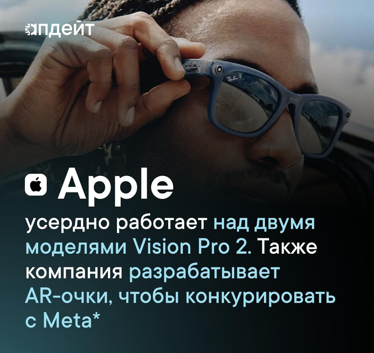 🍏Vision Pro 2 — что известно? В разработке две новые модели: одна — легче и дешевле текущей, вторая — с подключением к Mac и минимальной задержкой для профессиональных задач. Также компания стремится создать лёгкие AR-очки для повседневного ношения, однако примерных сроков выхода таких нет. Возможно, первая версия будет похожа на Meta* Ray-Ban, которые умеют снимать видео в 1080р. Несмотря на не очень успешный старт продаж Vision Pro, Apple стремится стать топ-1 на этом рынке. *принадлежит компании Meta, которая признана экстремистской в РФ и запрещена ⚡️ Подписаться.
