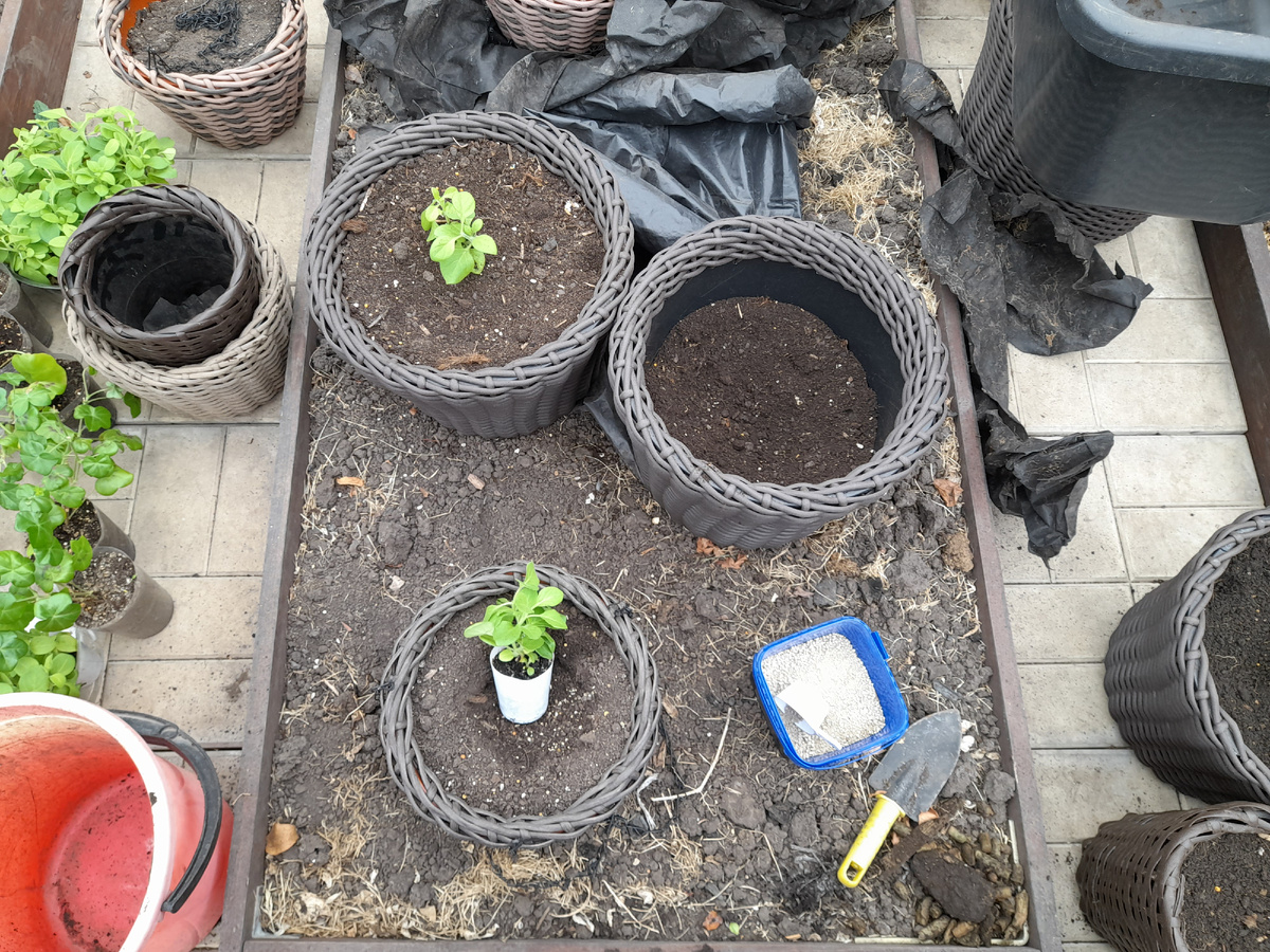 Практически все рассадили по кашпо и ящикам. Основную часть кашпо грунтом заполнили еще в прошлые выходные.