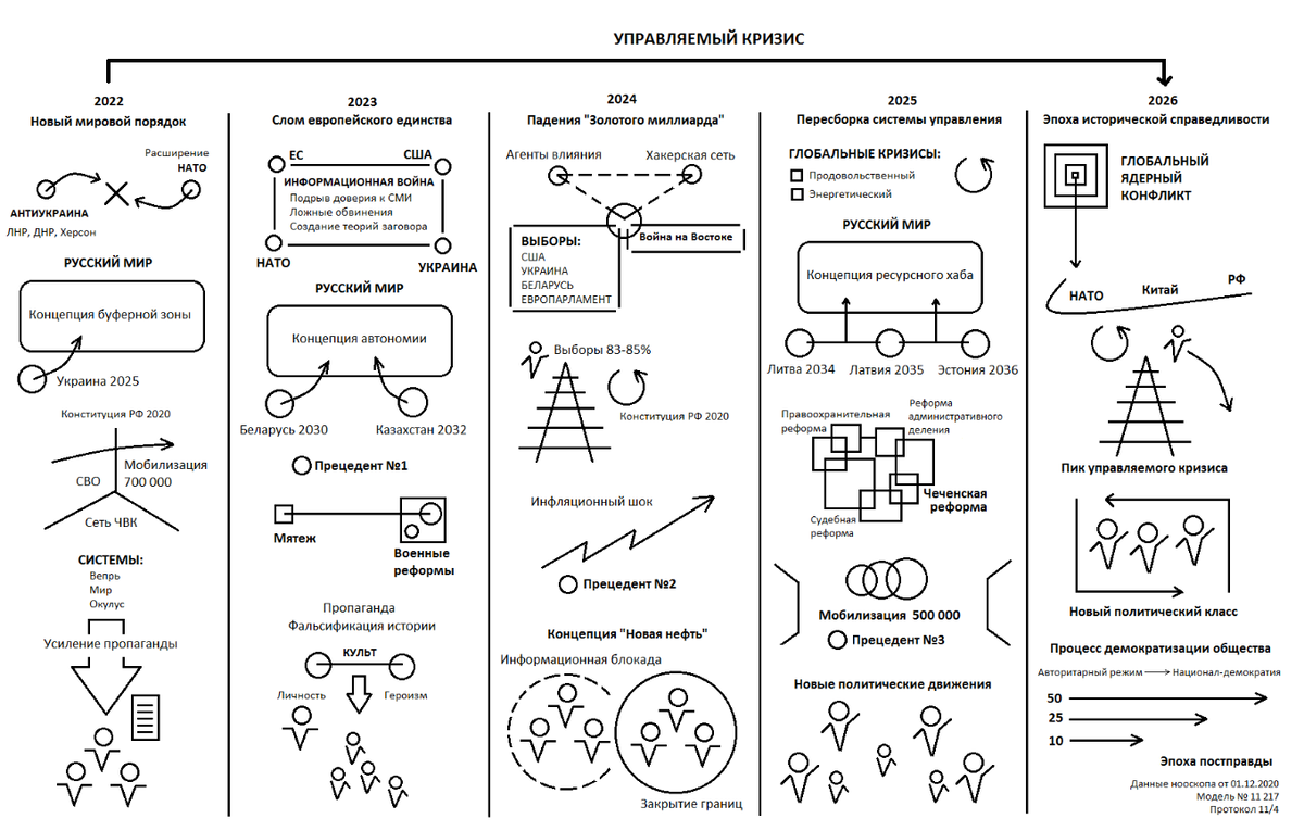 Позиция любого официального лица Кремля автоматически приписывается к мнению всей федеральной власти. Так выдержка из книги руководителя Администрации президента России Антона Вайно стала поводом для новости о возможной всеобщей мобилизации в РФ в 2025 году. Выходец из советской партийной элиты, бывший сотрудник структур МИДа, кремлёвский «аппаратчик», а ныне глава президентской Администрации Антов Вайно служит при первом лице государства уже 13 лет. Итогом многолетнего пребывания в высших политических кругах стала его книга «Образ Победы». Масштабная работа Вайно содержит любопытные расчёты и выводы относительно политического настоящего и будущего России со ссылкой на портал glowers.ru, где опубликованы любопытные схемы (их расшифровку можно увидеть в книге Антона), сообщает издание «Кремлевский чиновник». Самое интересное, что все события из этих загадочных рисунков (СВО, расширение русского мира, мобилизация и мятеж Пригожина) уже сбылись. А что касается ближайшего будущего, то, сог