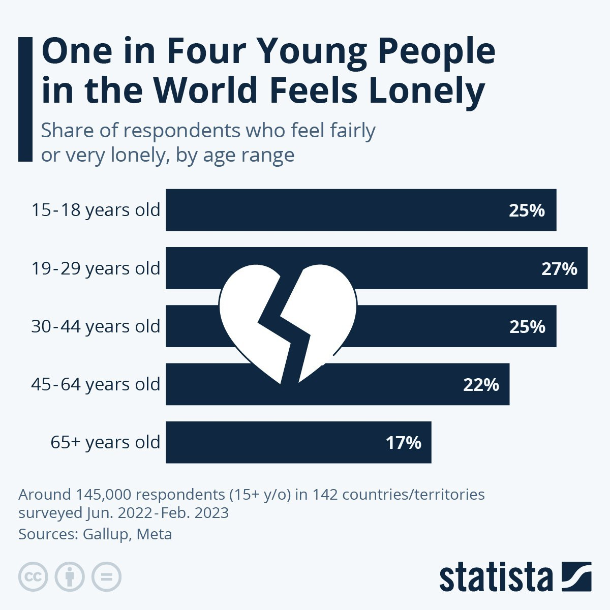 Доля людей, испытывающих одиночество в разрезе возрастных групп. Не удивительно, что в 19-29 лет больше всего такое испытывают. Удивительно, что так много. Приглашаю отслеживать нас в телеграм канале