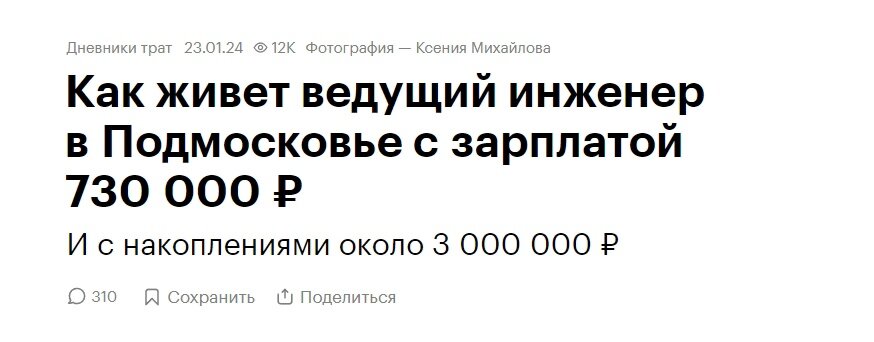 Как живет ведущий инженер в Подмосковье с зарплатой 730 000 ₽