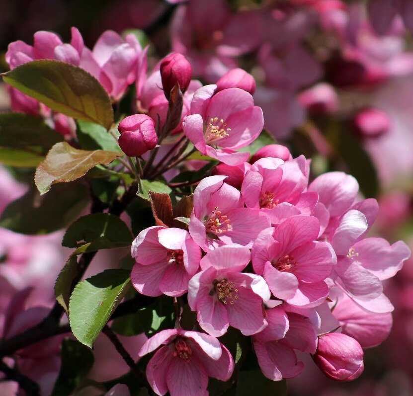 1. Есть сорта яблони декоративной с ярко-малиновыми цветками и пурпурной листвой?