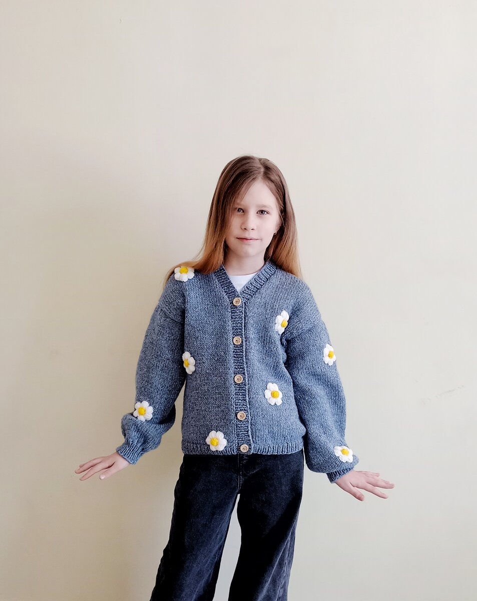 Как расчитать петли на кардиган с объемными цветами.