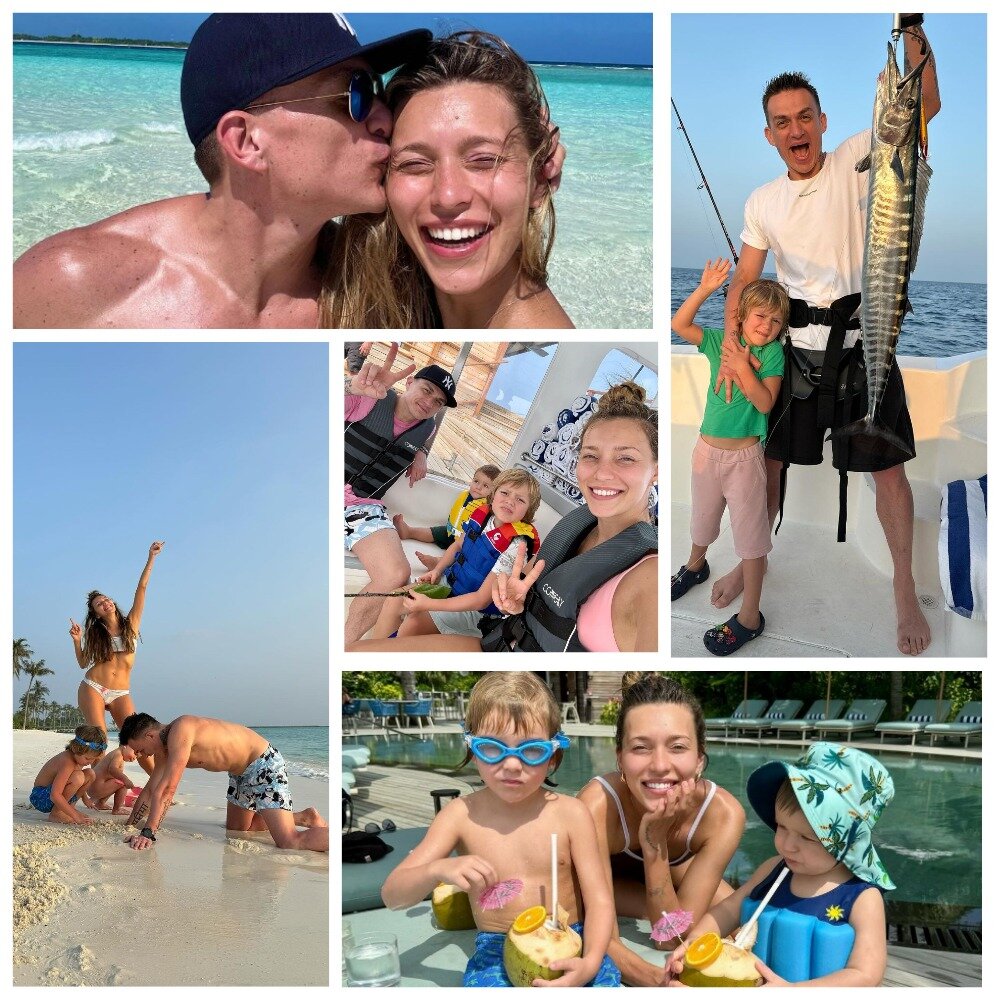 Пока у нас за окном снег и холод, у кого-то солнце и тепло. Предлагаем ненадолго окунуться в лето и подсмотреть за нашими знаменитостями. Регина Тодоренко и Влад Топалов Пара вместе с детьми отправилась отдыхать в самое настоящее райское местечко — на Мальдивы. Ловят рыбу, пьют сок, загорают и много купаются. Ну просто сказка! Кети Топурия с семьей Солистка группы A'Studio отмечала день рождения своего сына на Сейшелах: океан, солнце и вкусная еда. А разве нужно что-то еще для идеального праздника? Настасья Самбурская Звезда «Универа» демонстрирует, что новогодние праздники никак не сказались на ее фигуре. Выглядит Настасья действительно шикарно, и шляпка, как единственный элемент одежды, очень даже к лицу. Полина Гагарина Артистка также решила не отставать от коллег и отправилась в отпуск к океану. Стройности и невероятному загару певицы нам остается только позавидовать! Наталья Гордиенко Певица опубликовала трогательную фотографию с сыном на фоне завораживающей природы. Что может быт