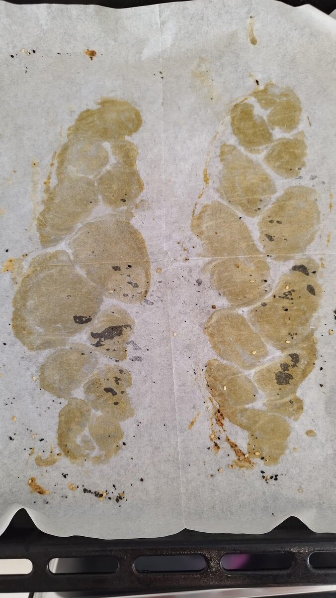 Вот я сняла с противня свежие халы. И я так же увидела, что, хотя эти халы и исчезли с подноса, он не остался абсолютно пустым - там всё равно остались следы того, что на нём секунду назад они были, а так же остались крупинки теста.