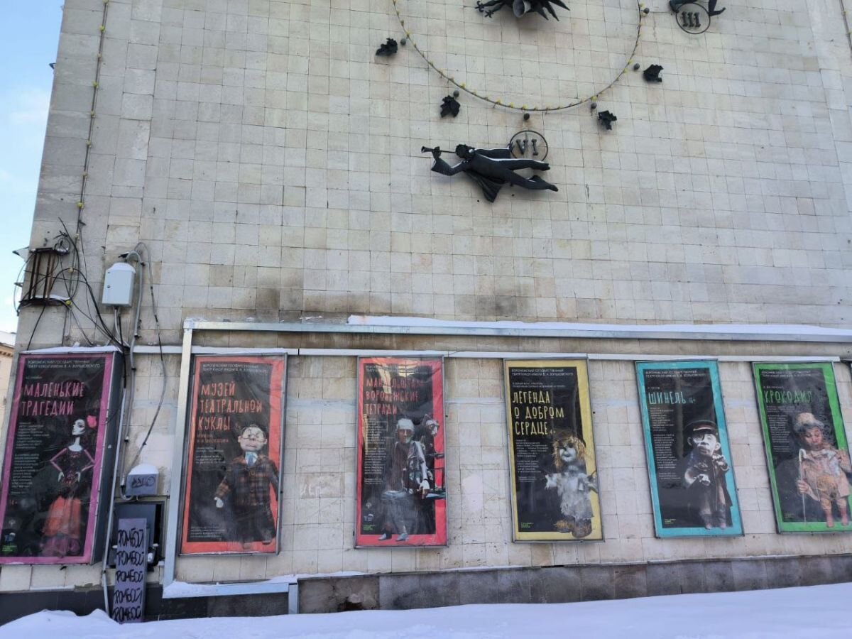 Со здания из ансамбля Воронежского театра кукол убрали незаконную вывеску магазина оптики