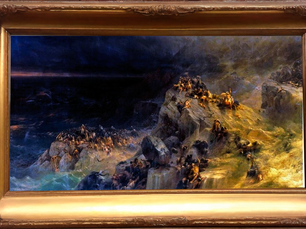 Он остановился напротив картины, всматриваясь в детали. Люди карабкались, цеплялись друг за друга, казалось, что слышны их крики о помощи, взывания к богам. Но вода была везде. Само небо стало бурей. Спасения не было.