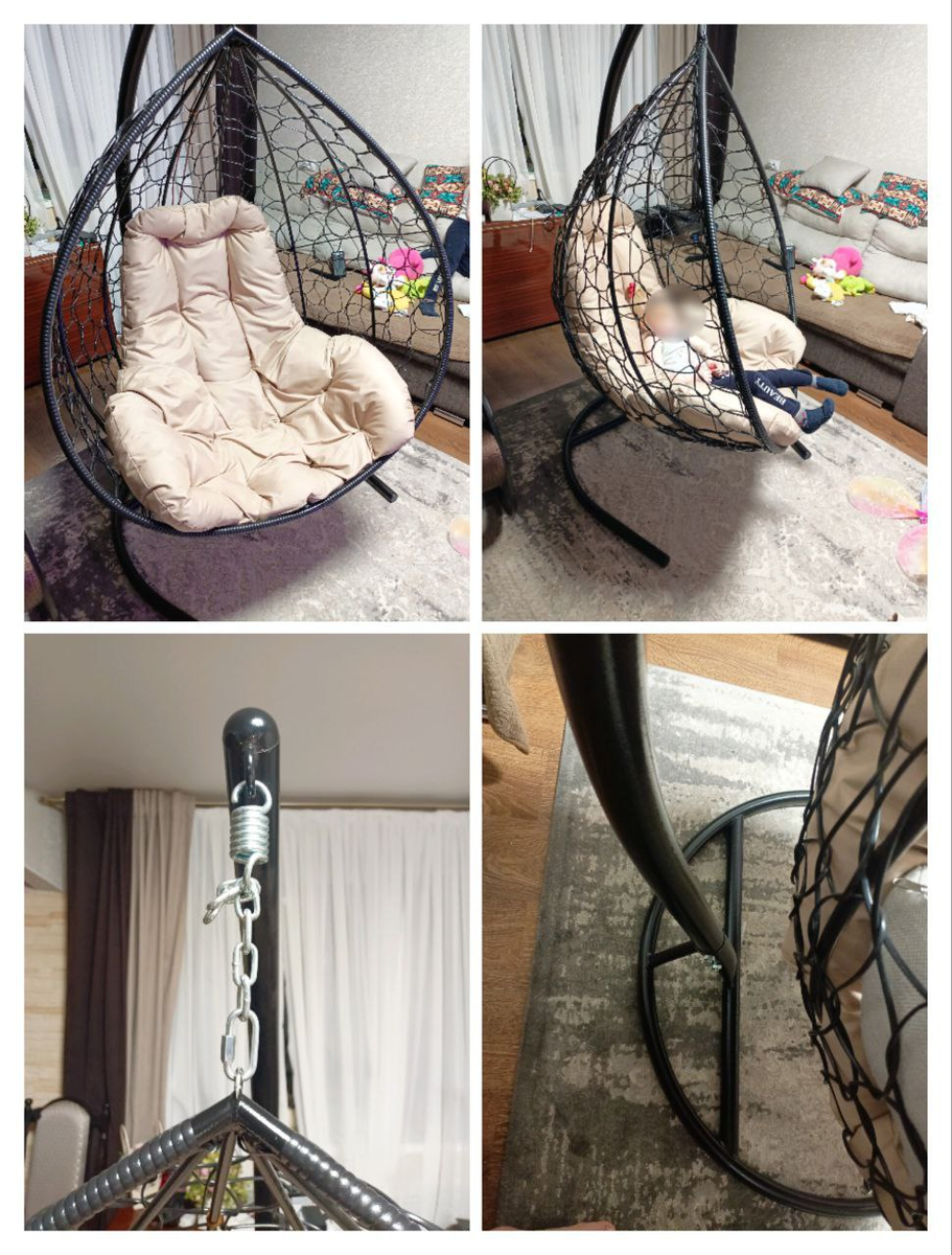 Во время очередных выходных в Казане дочери приглянулось такое кресло, приглянулось настолько сильно, что отказалась идти гулять по Баумана. Вечерок мы проторчали в отеле. Она в кресле😡характер. Кресло просто стало идеей фикс. На ее 4хлетие решили ей его подарить. Ну, а что еще. Пройдясь по офлайн-магазинам поняли, что дорого. Полезли в инет. На всех площадках цены одинаковые. Но мегамаркет давал хорошие сбер-бонусы. Поэтому остановились на нем. Кресло с доставкой. Достаточно громоздкое. Размеры (ВхШхГ), см: 186x118x70. На маркетплейсах есть аналоги. У некоторых корзина складывается. Но мы пошли по принципу, что чем проще механизм, тем он долговечнее. Основание металлическое, по факту должно быть устойчивым. Но. Есть ньюанс. Когда собирается толпа детей, именно неадекватного возраста, это как правило до 7-8 лет, то любой ребенок в состоянии опрокинуть кресло, проверено, поверьте. Я лично пыталась проверить на устойчивость, но кресло подо мной вело себя очень примерно. Чего нель