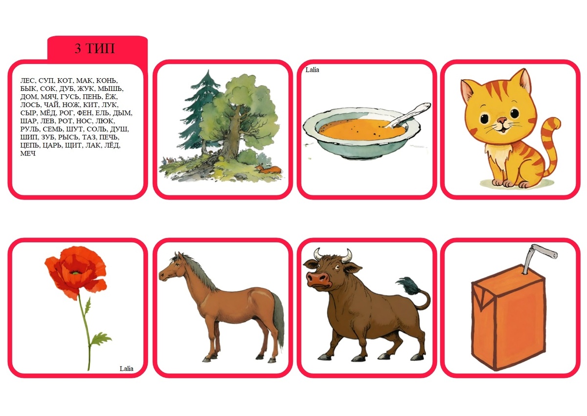 Ниже представлена подборка слов 3 типа слоговой структуры в картинках.