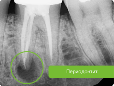 Периапикальный или апикальный периодонтит – это воспаление тканей, окружающих верхушку корня зуба. Периапикальное воспаление часто является следствием инфицирования пульпы зуба, что, в свою очередь, чаще всего происходит по причине обширного кариозного поражения зуба. Периапикальное воспаление часто сопровождается резорбцией костной ткани и, иногда, верхушки корня зуба. Однако периапикальные ткани обладают способностью к заживлению, если устранить причину воспаления. Периапикальный периодонтит можно разделить на острый и хронический. Причины апикального периодонтита Острый апикальный периодонтит Признаки и симптомы: Возможные осложнения: Лечение Удаление больного зуба - самый простой и эффективный метод, поскольку он позволяет удалить источник инфекции и дренировать гной. Лечение корневых каналов – корень зуба можно сохранить с помощью лечения корневых каналов, которое также может быть использовано для дренирования инфекции. Хронический апикальный периодонтит Хронический апикальный пер