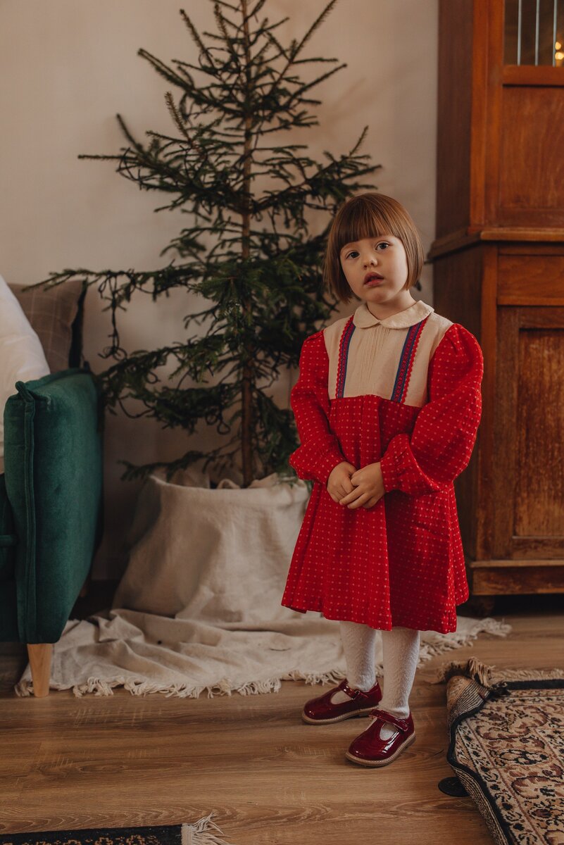 Перед вами потрясающее винтажное детское платье, созданное в СССР. Это платье из моего детства, которое бережно сохранила моя мама. Теперь это платье находится в моей коллекции ретро детских платьев и я с огромным удовольствием хочу рассказать о нем подробнее. Перед вами потрясающее винтажное детское платье, созданное в СССР. Это платье из моего детства, которое бережно сохранила моя мама. Теперь это платье находится в моей коллекции ретро детских платьев и я с огромным удовольствием хочу рассказать о нем подробнее. Это красное платье с длинными рукавами, украшенное изящным и узором в виде мелких снежинок. Снежинки на красном фоне смотрятся очень ярко и нарядно, поэтому оно очень актуально зимой в новогодние праздники. А рукава застегиваются на маленькие пуговички, которые создают фонарики и от этого смотрятся очень торжественно. Отличительной особенностью этого платья являются синие вставки, выполненные в виде красивого орнамента. Такой элемент добавляет платью оригинальности и дела