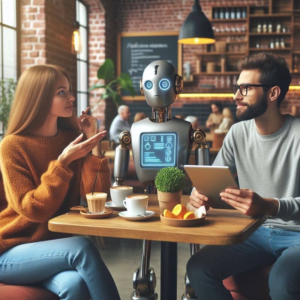 "Привет, Илья! Как приятно тебя видеть," - сказала я, садясь напротив. "Ты был прав, эти технологические достижения вдохновляют."