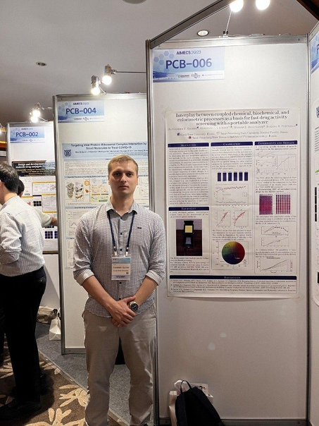 📎 Основным направлением научной деятельности является исследование новых методов колориметрической и фотометрической индикации роста микроорганизмов и скрининга антибактериальных лекарственных средств. В ходе выполнения работы присоединился к команде по созданию прибора – портативного микробиологического анализатора, при помощи которого ведутся эти исследования. Данная работа ведется совместно с коллегами из Санкт-Петербургского НИИ фтизиопульмонологии. Одна из версий анализатора в настоящее время работает в НИИФ, с его помощью исследуется влияние различных антибиотиков на микобактерии, которые вызывают туберкулез.