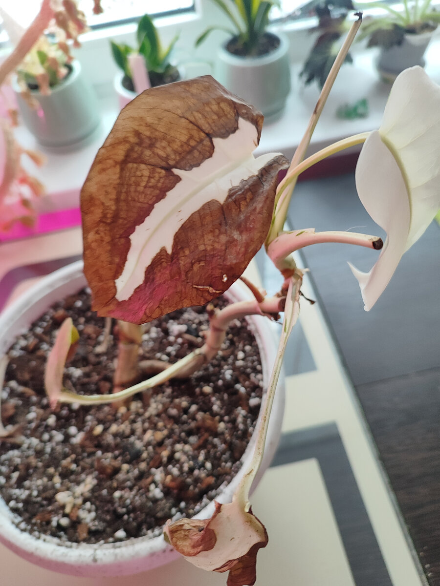Сегодня предприняла ещё одну попытку оживить свою монстеру, которая ушла в белый. Когда-то я сделала ошибку, оставив себе слишком белый черенок от монстеры альбы. В итоге она уже третий раз выпускает белые безхлорофильные побеги, которые не могут самостоятельно жить.