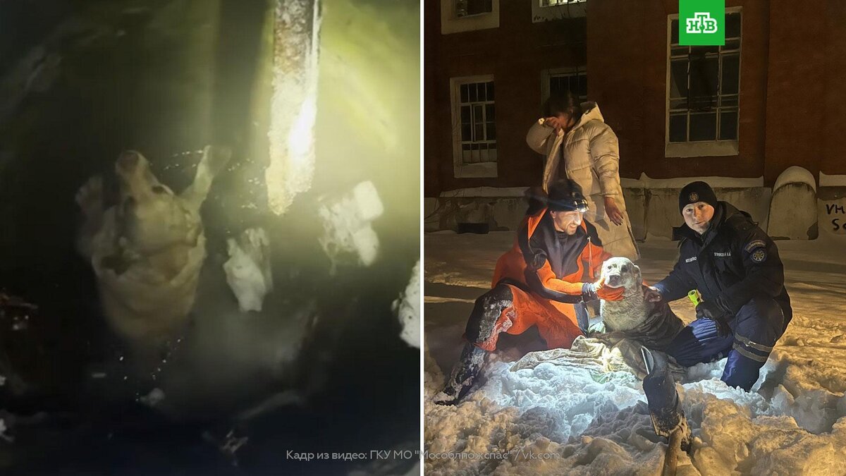 Подмосковные спасатели достали лабрадора, провалившегося в люк с ледяной водой