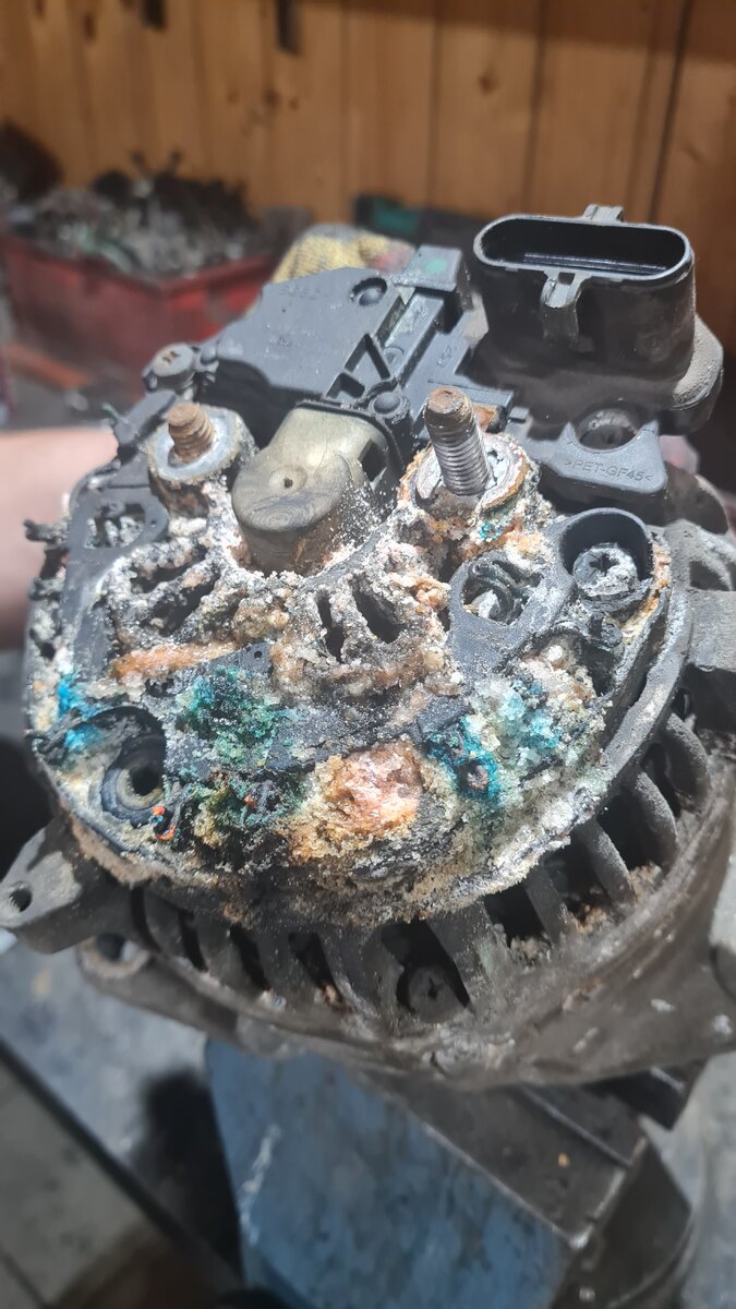 Всем добрый день . Как вы уже знаете я занимаюсь ремонтом автомобильных генераторов и стартеров . Сегодня позвонил клиент и сообщил о своей проблеме. Автомобиль Mercedes-Benz Actros после длительного простоя ( около года со слов владельца ) перестал заводится вообще . Начали разбираться в чем дело. Поменяли акб , авто ожил , но выдал кучу ошибок, в том числе и заряд акб. Ребята быстренько его сняли и привезли ко мне на ремонт , попутно рассказали что на него все это время тек антифриз ! Взяв агрегат в руки я понял что ремонтировать его было бессмысленно, так как он просто сгнил Но из любопытства я решил его разобрать, что далось мне с большим трудом , так как все гайки и болты закисли , приржавели намертво. После вскрытия мы все посмотрели на него , удивились и от души посмеялись Было принято решение покупать новый агрегат китайского производства , и отдельно установить на него оригинальное реле ( у ребят было свое ) Почему устанавливаем оригинальное реле ? Все п