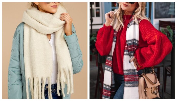 Шарф - это один из пазлов, без которого ни один женский аутфит не будет выглядеть в зимнее время года гармонично и завершено. Сегодня мы с вами обсудим, как выигрышно "подружить" шарф с любым стилистическим образом в этом сезоне. Ниже вашему вниманию представлены идеальные луки с главным героем нашей публикации - белым шарфом. Белый кашемировый шарф с бахромой - стильный тренд, который следует приобрести модницам всех возрастов для того чтобы создавать шикарные светлые образы каждый день. Первый аутфит включает в себя шубу чебурашка, белую шапку бини и актуальный шарф, объемный вязаный свитер благородного винного оттенка, а также базовые черные брюки. Белоснежные шарфы удачно дополняют собой монохромные светлые образы. Сочетание: блуза + брюки + остроносые туфли + объемный белый шарф - добавит вашей внешности благородную и дорогую ноту. Шарфы в трендовый принт "клетка" - это следующий тренд сезона, который успешно разнообразит ваш однотонный базовый гардероб. Контрастная клетка отлично