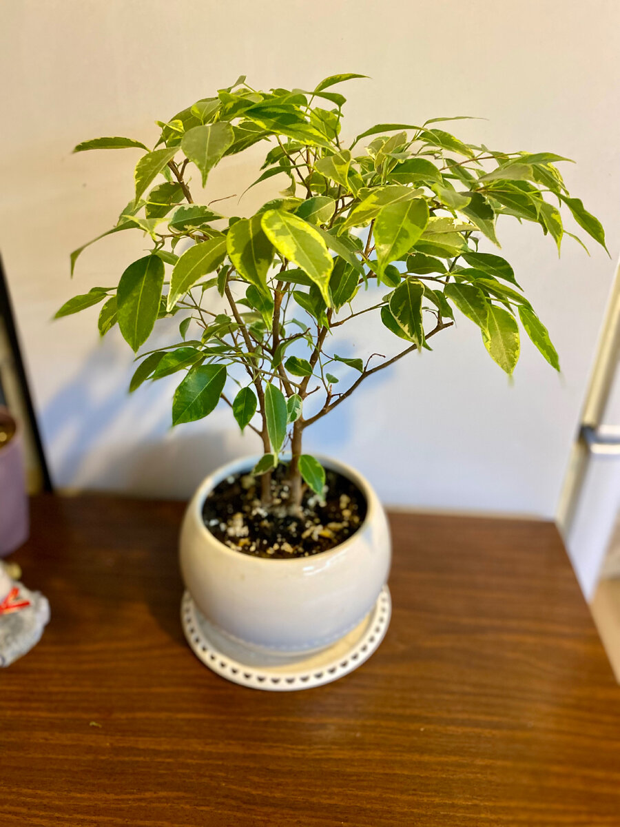 Фикус Бенджамина вырастает в огромные деревья с мощными корнями и раскидистой кроной, достигая 20 м в высоту. Но, к сожалению, только в Австралии и странах Азии. У нас они одомашнены, и мирно живут в квартирах. Фикус бенджамина является деревом-символом Бангкока — столицы Таиланда. Часто для придания стволу растения толщины и фактуры при выращивании в декоративных целях сажают 2—3 растения вместе и переплетают их стволы в косичку или жгут. По мере роста стволы срастаются и образуют красивые наросты. В Королевском ботаническом саду в Перадении на Шри-Ланке растет фикус 150 лет от роду, имеющий крону площадью в 25 квадратных метров. Местные жители дали ему имя «Черепаха» за сходство формы кроны с этим животным. Покупая фикус Бенджамина, помните – он небольшой и компактный только первые 5 – 7 лет. Фикус Бенджамина ценится за красивые листья – у видовых растений они темно-зеленые, овальные, длиной 5 – 12 см и шириной 2 – 5 см, но у данноко цветка очень много сортов. Нюансы п