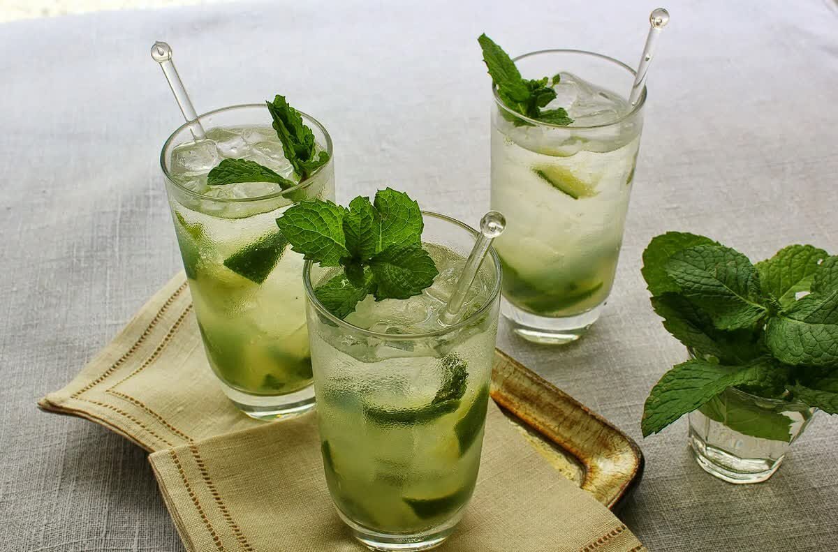 Готовое мохито можно украсить ломтиком лайма и веточкой мяты. Подавайте в высоких стаканах, чтобы подчеркнуть освежающий вид напитка.