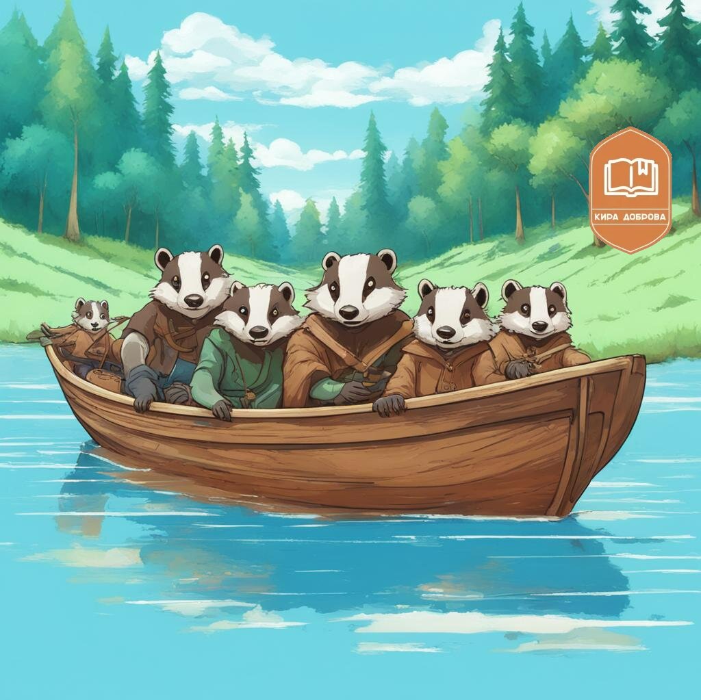 По быстрой реке плыла лодка. В лодке сидел барсук Рикки, его жена-барсучиха и их дети-барсучата. С любопытством смотрели они на высокий, густой лес, заросли кустов. А вот и барсучья нора, знать надо причаливать: приплыли уже.