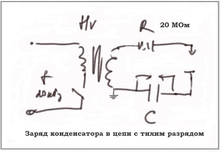 Опыт ставший уже классическим по заряду конденсатора током электронов в цепи разорванной разрядником, имеющим существенно больший разрядный промежуток, нежели требуется для пробоя воздуха. Не применяется диодов, трансформатор работает в режиме разделения пучностей тока и напряжения на холодном и горячем его концах. Есть много гипотез, обьясняющих его работу, однако именно этот опыт доказывает на практике сущность лидера молнии в природе. Традиционно вольтамперная характеристика разряда в нормальной среде воздуха при атмосферном давлении выглядит следующим образом И вот как раз области темнового тихого разряда нас интересуют более всего. Здесь и разряд Таунсенда, при котором электроны выбиваются из катода, но не могут достигнуть анода вследствии нехватки энергии, возвращаясь обратно на катод. Как тут не вспомнить магнетрон Халла. )))) К слову Тесла и ряд исследователей до него также использовали магнитное гашение дуги в разряднике. Но разряд Таунсенда инициируется при низких давлениях и