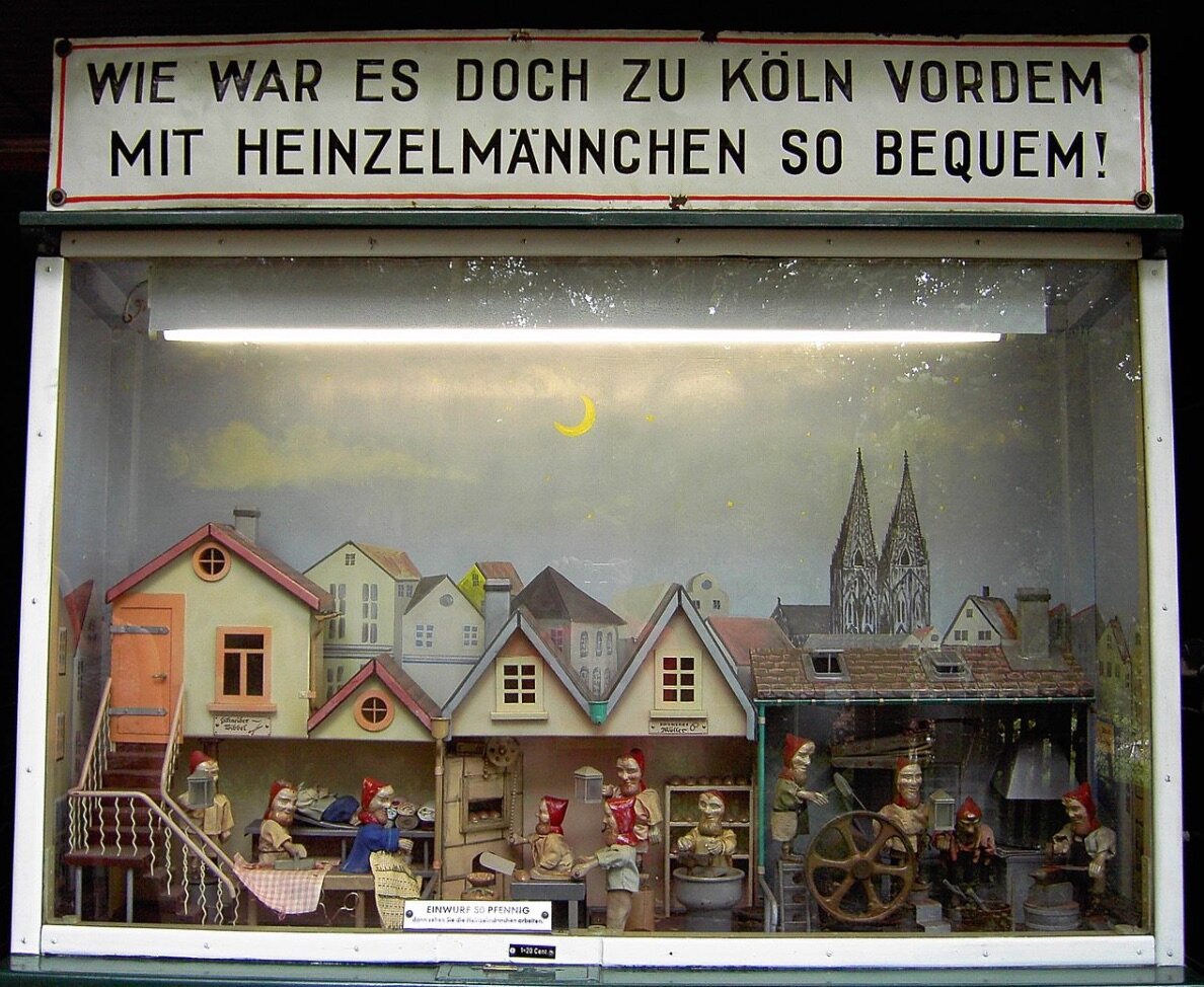 В одной книжке я прочитал, что в Кёльне совсем недавно творились чудесные дела. Там жили домовые, о которых Август Копиш даже сложил в 1836 году стихотворение. Называлось Die Heinzelmännchen zu Köln, а начиналось так: Wie war zu Köln es doch vordem