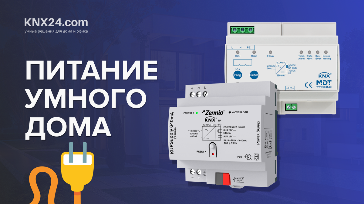 Ключевой элемент любой инсталляции, который обеспечивает электропитанием все устройства, подключенные к системе: щитовое оборудование (актуаторы, шлюзы), модули управления (выключатели, сенсорные панели), всевозможные датчики и прочие устройства.