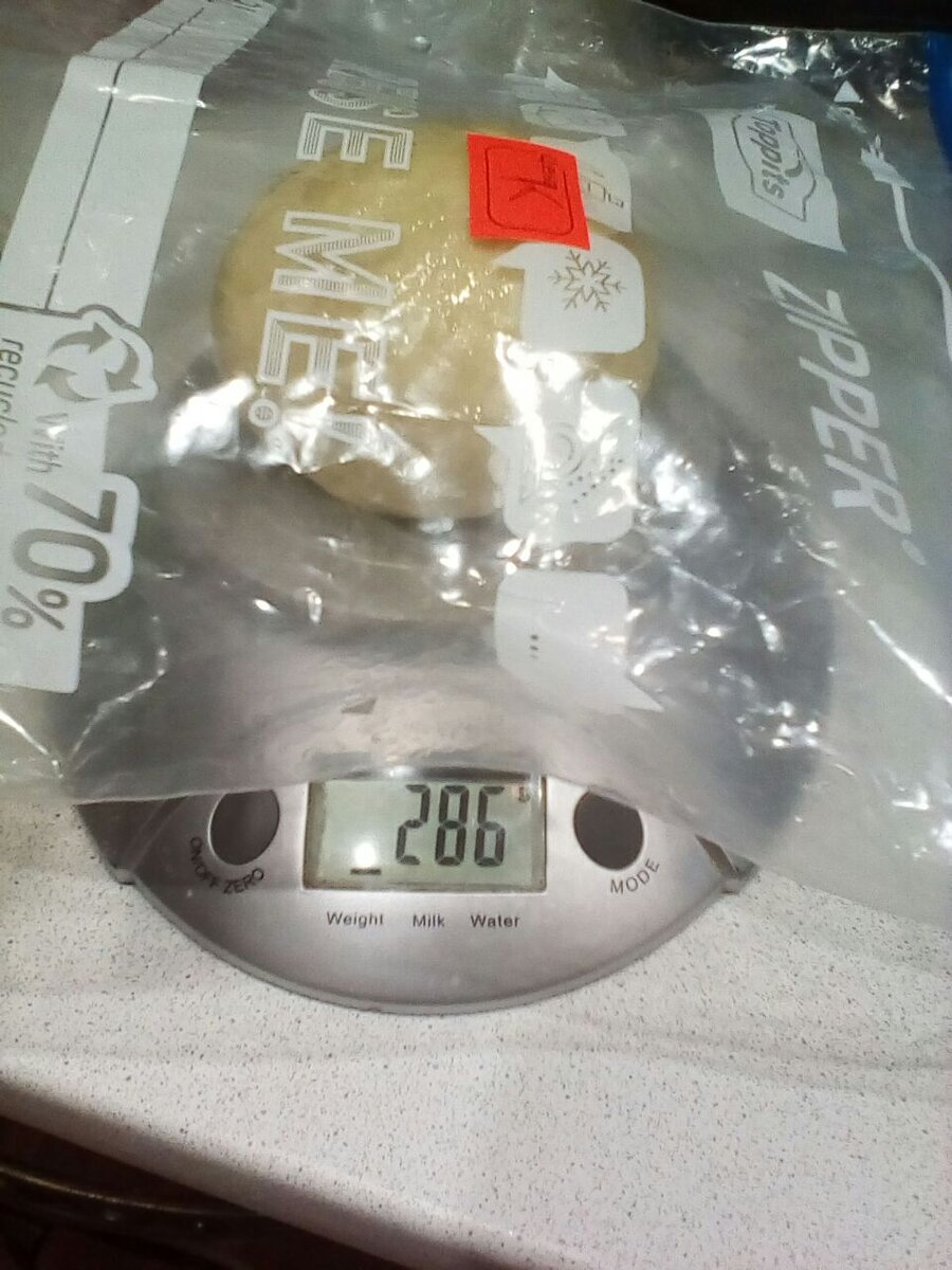 Итак, друзья, у нас сегодня довольно интересная задача - сравнить качества теста обыкновенного и заквасочного, и делать это мы будем на примере закрытой пиццы кальцоне. Для обыкновенного теста для домашней духовки возьмем муку с 12% белка, смешаем с сахаром, солью, инстантными дрожжами. Добавим оливковое масло и холодную воду. Все перемешаем, сделаем шар, накроем миску и отставим в сторону на 10 минут. Потом обомнем тесто еще около 10 минут до однородного состояния. Смажем оливковым маслом и уберем в пакете для заморозки с застежкой-молнией в холодильник на трое суток (на пакет наклеим метку "К", чтобы не перепутать его с другим тестом). Для теста на пшеничной закваске используем польский полуфабрикат (пулиш): сперва смешаем в контейнере 1/8 ч л быстродействующих дрожжей, 47 г холодной воды и 47 г нашей муки (все той же, с 12г белка). Все тщательно перемешаем, у нас получится густое тесто, как для оладий. Спустя 18 часов убираем наш пулиш в холодильник. Потом сделаем тесто: смешаем п
