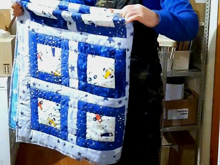 Здравствуйте, уважаемые подписчики и гости канала! Сегодня рассказываю о быстром способе пошива детского лоскутного одеяла. К сожалению, не удалось сделать фотосессию, было очень ограничено время. Одеяло уже ожидает своего будущего хозяина 🥰 Итак, использована схема "квадраты в окантовке" - я её так называю😃. Нам потребуется ткань 3 расцветок, не считая бэка (задника одеяла) и окантовки. Сегодня рассмотрим пошив одного блока. Нам потребуется: ✅️ 20 квадратов 6х6 дюймов (15 см) по количеству блоков. ✅️ Полосы 2,5 дюйма (6,5 см), количество полос зависит от ширины ткани. Я нарезаю несколько, примерно, потом добавляю. Я использовала китайский и польский хлопок, и немного хлопка для пэчворка (не хватило ткани). Китайский и особенно польский продекатировала парогенератором. Анонс пошива был в посте: Берём полосу лицом вверх, прикладываем квадрат лицом к лицу, если нужно прикалываем, и стачиваем, строго соблюдая свой припуск. Ничего не растягиваем! Ткани хорошо ложатся и"держатся"
