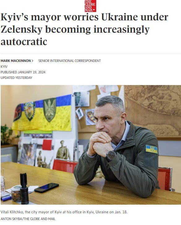 Мэр Киева, видите ли, обеспокоен тем, что режим на Украине становится все более автократическим, а все якобы либеральные реформы, за которые боролись в ходе двух революций, сводятся на нет. В качестве примера Виталий Кличко приводит ситуацию вокруг СМИ в незалежной. По его словам, на журналистов в стране оказывается беспрецедентное давление, а по телевизору народу уже давно транслируется лишь то, что диктуется кабинетом Зеленского.