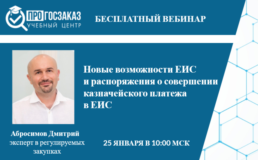 25 января 2024 года в 10:00 по МСК состоится бесплатный вебинар на тему «Новые возможности ЕИС и распоряжения о совершении казначейского платежа в ЕИС».